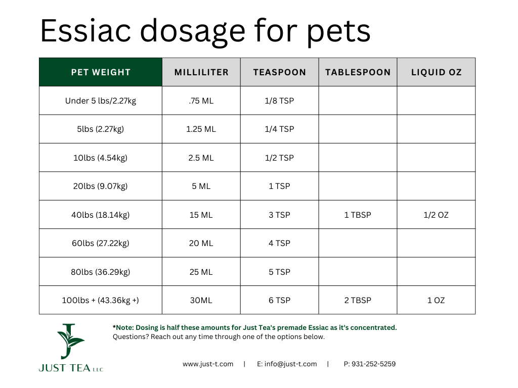 Can I give Essiac tea to my pets? Yes! The dosage you give your pet is based on their weight (see chart below). Individuals have seen great success having their pets take the tea directly, or adding it to their food and water if they don’t prefer to drink it straight. Note: This chart belowContinue reading “Essiac for Pets”
